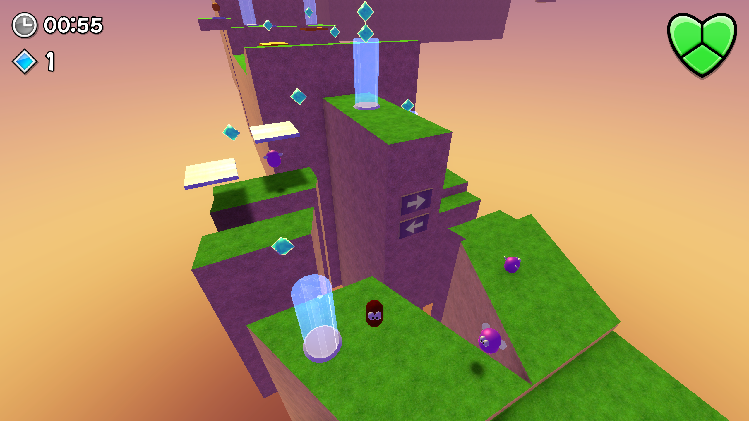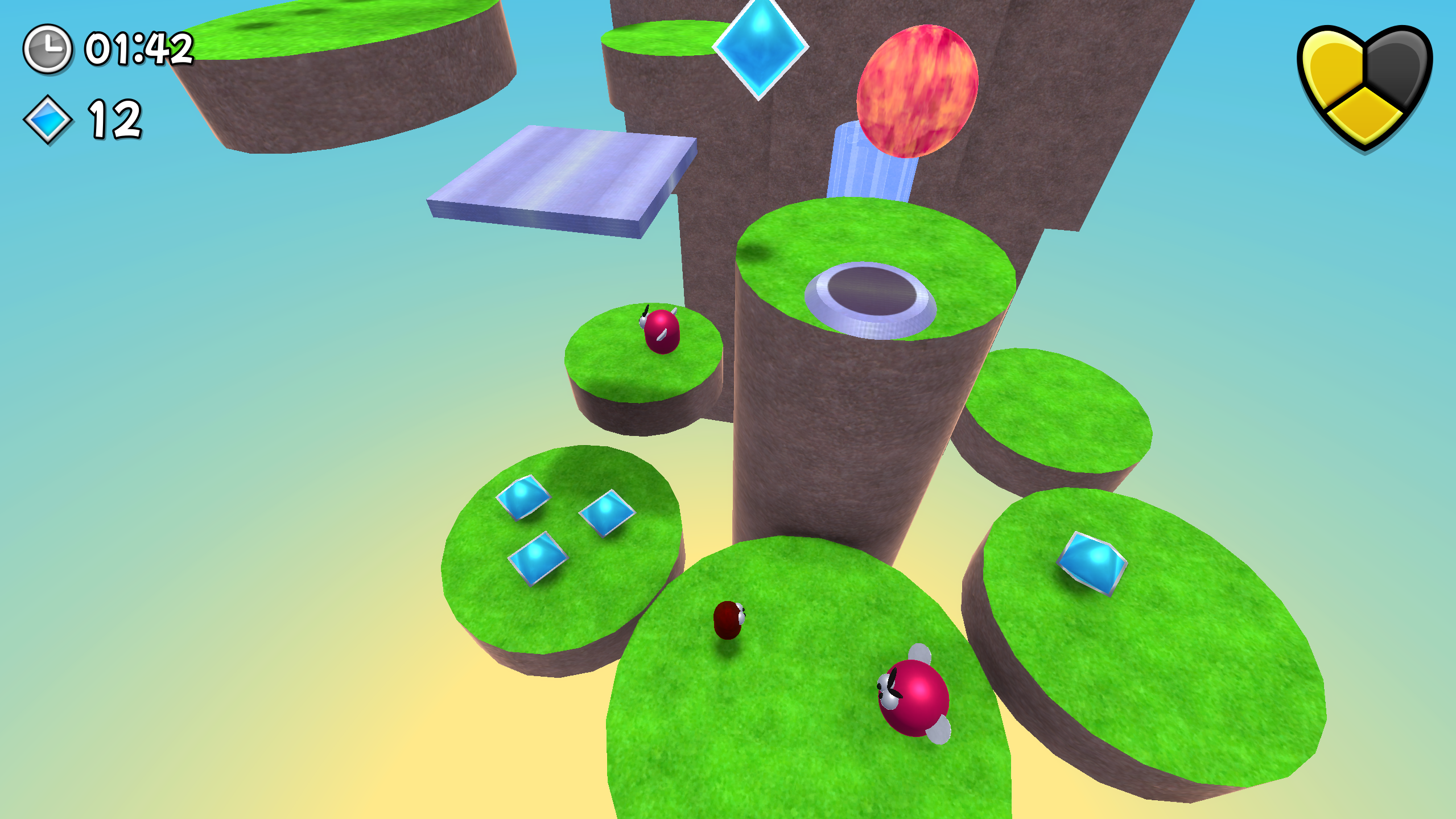 The goal of each level is to reach the goal as you collect gems and defeat enemies along the way.